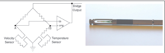 風速儀有很多不同的種類,其中工廠潔凈車間常用的式熱線式風速儀。其原理是,將一根通電加熱的細金屬絲(稱熱線)置于氣流中,熱線在氣流中的散熱量與流速有關,而散熱量導致熱線溫度變化而引起電阻變化,流速信號即轉變成電信號。它有兩種工作模式:①恒流式。通過熱線的電流保持不變,溫度變化時,熱線電阻改變,因而兩端電壓變化,由此測量流速;②恒溫式。熱線的溫度保持不變,如保持150℃,根據所需施加的電流可度量流速。恒溫式比恒流式應用更廣泛。